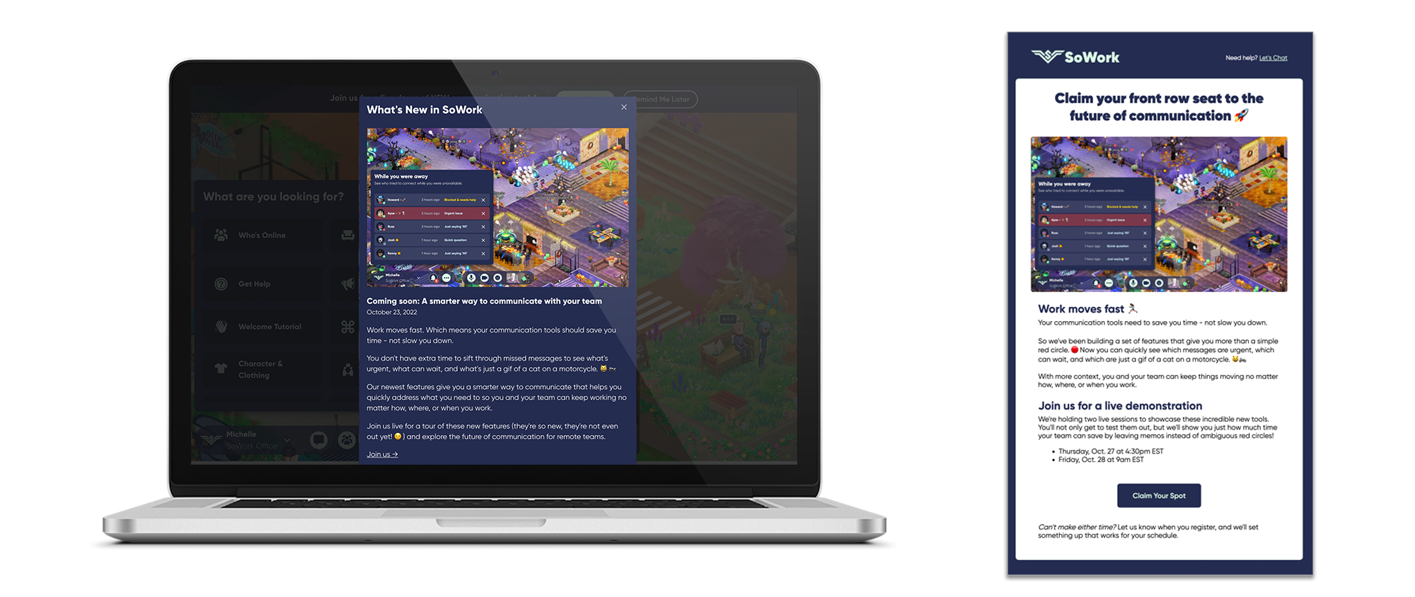 As SoWork was developing their product, they were releasing large, impactful features that unlocked immense value for their ideal customers. Given the magnitude of these releases, I was looking for ways to demonstrate the value of new features to potential customers and simultaneously use them as a way to convert these leads.